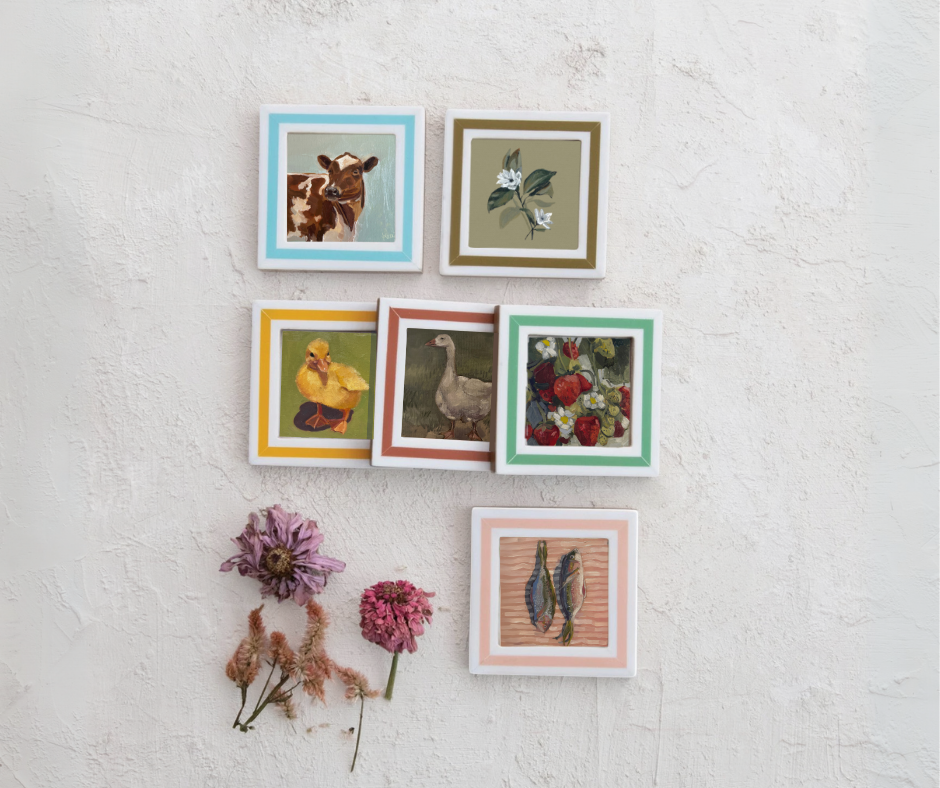 3x3 prints, Striped Magnetic Frame, and hanging option as well.